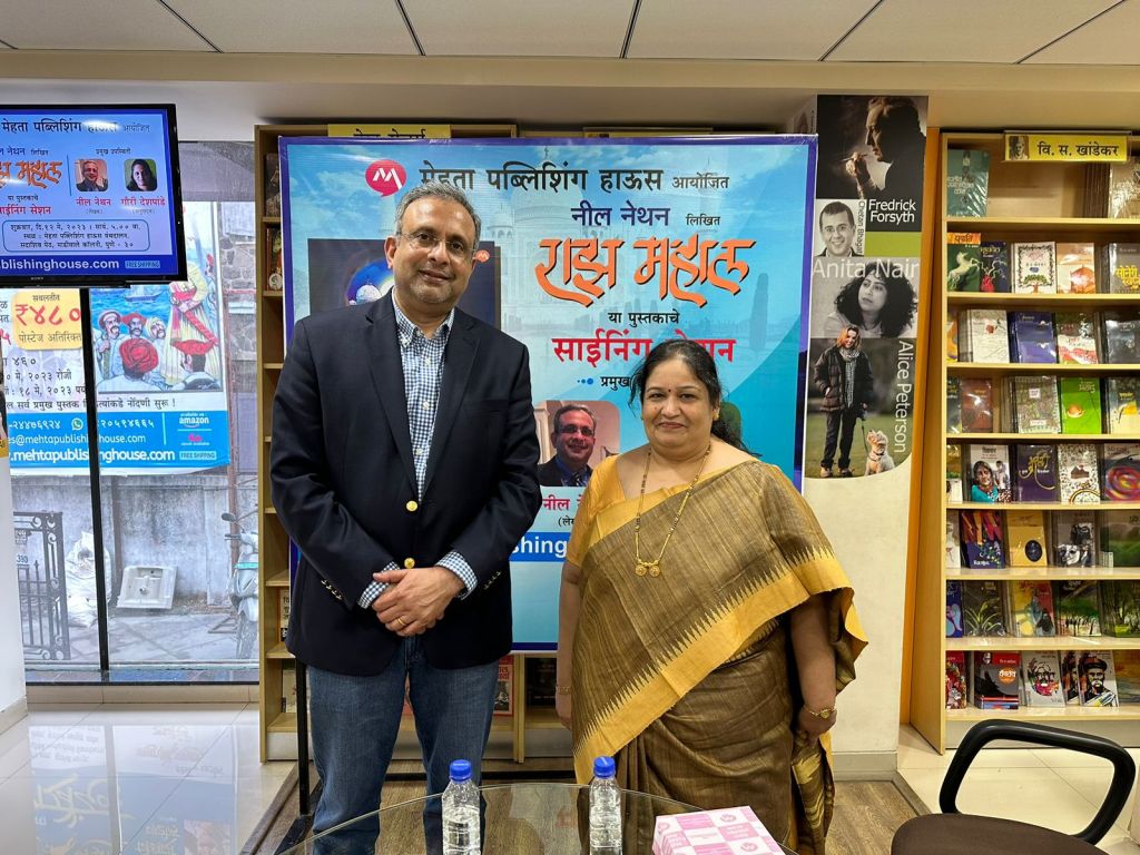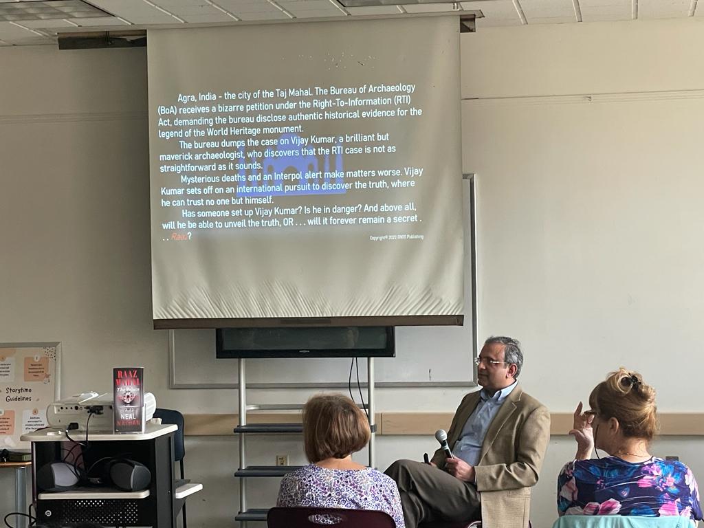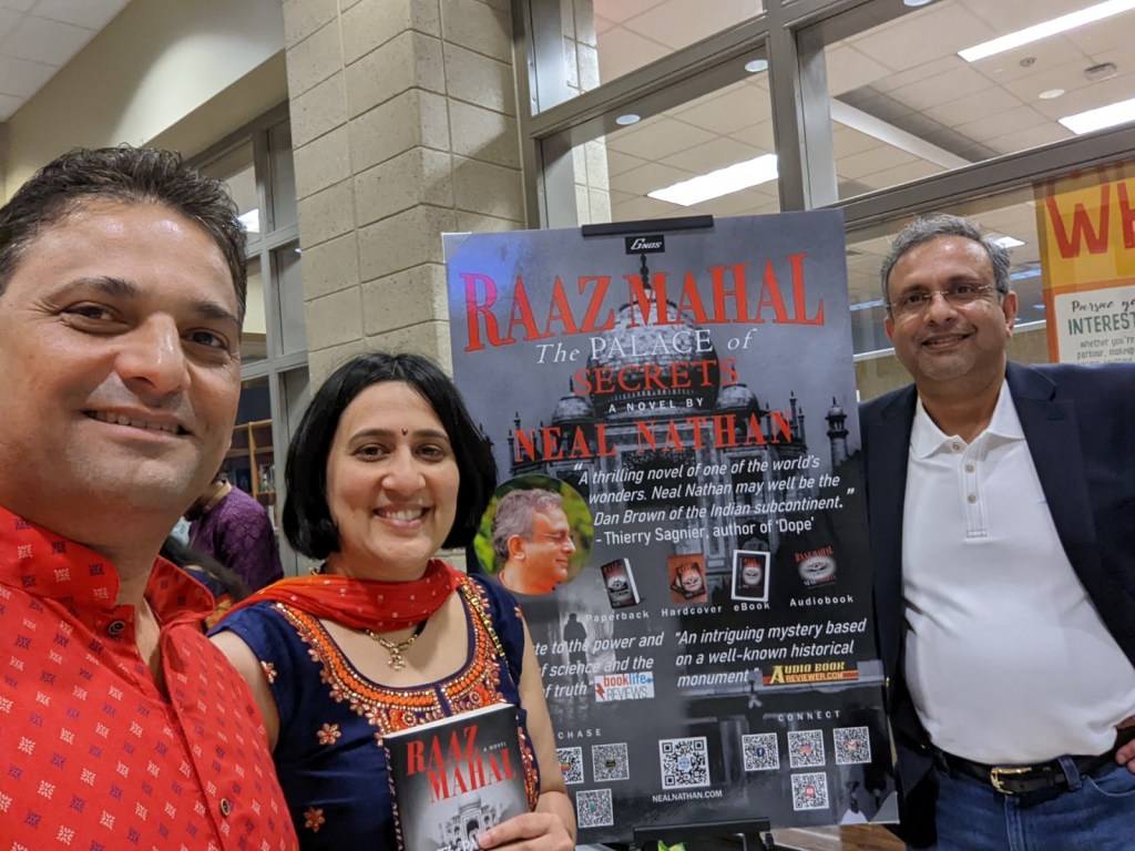 With the Honorable U.S. Congressman Thanedar, Virginia, July 2023Presenting ‘Raaz Mahal – The Palace of Secrets’ to the movie producer, director, and actor duo of Vivek Agnihotri and Pallavi JoshiWith readers at a Washington DC area event, 2022Book Discussion at Patrick Henry Center, Vienna, Virginia, April 2023Book Discussion at Patrick Henry Center, Vienna, Virginia, April 2023Book Discussion at Patrick Henry Center, Vienna, Virginia, April 2023With Ms. Deb Smith-Cohen, the Mystery Book Club Coordinator, at Patrick Henry Center, Vienna, Virginia, April 2023Book Discussion at Patrick Henry Center, Vienna, Virginia, April 2023Book discussion hosted by Orange City Literature Festival and SGR Knowledge Foundation, Nagpur, May 2023Book discussion hosted by Orange City Literature Festival and SGR Knowledge Foundation, Nagpur, May 2023Book discussion hosted by Orange City Literature Festival and SGR Knowledge Foundation, Nagpur, May 2023Book discussion hosted by Orange City Literature Festival and SGR Knowledge Foundation, Nagpur, May 2023Book discussion hosted by Orange City Literature Festival and SGR Knowledge Foundation, Nagpur, May 2023Book Signing (Raaz Mahal – Marathi Edition) at the Mehta Publishing House, Pune, May 2023Book Signing (Raaz Mahal – Marathi Edition) at the Mehta Publishing House, Pune, May 2023Book Signing (Raaz Mahal – Marathi Edition) at the Mehta Publishing House, Pune, May 2023Book Signing (Raaz Mahal – Marathi Edition) at the Mehta Publishing House, Pune, May 2023Raaz Mahal (Marathi Edition), Podcast with translator Ms. Gowri D., Pune, May 2023Book Signing (Raaz Mahal – Marathi Edition) at the Mehta Publishing House, Pune, May 2023Book Signing (Raaz Mahal – Marathi Edition) at the Mehta Publishing House, Pune, May 2023Book Signing (Raaz Mahal – Marathi Edition) at the Mehta Publishing House, Pune, May 2023Book Signing (Raaz Mahal – Hindi edition), New Delhi, May 2023, with Texas State Univ. Prof. Leah Renold and studentsBook Signing (Raaz Mahal – Hindi edition), New Delhi, May 2023Book Signing (Raaz Mahal – Hindi edition), New Delhi, May 2023Book Signing (Raaz Mahal – Hindi edition), Mumbai, May 2023Book Signing (Raaz Mahal – Hindi edition), Mumbai, May 2023Book Signing (Raaz Mahal – Hindi edition), Mumbai, May 2023Book Signing (Raaz Mahal – Hindi edition), Mumbai, May 2023Book Signing (Raaz Mahal – Hindi edition), Mumbai, May 2023